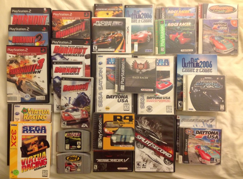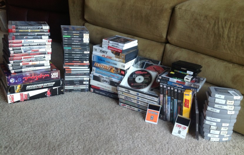 It hadn’t actually occurred to me quite how many racing games I own until I tried to gather most of them in one place to get this picture. I also have several groups of games not shown here: