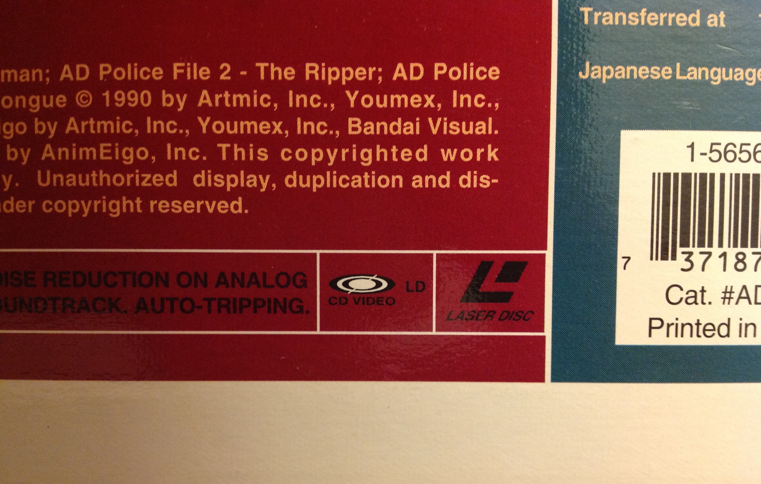 Some LaserDiscs, like this 1993 AD Police anime disc, carry the CD Video logo.